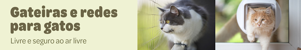 Na zooplus não nos preocupamos apenas com o bem-estar do seu gato, mas também com a sua segurança. E na verdade as nossas casas e apartamentos podem esconder inúmeros perigos. Assim, para manter o seu gato em segurança temos à sua disposição redes para varandas e proteção para janelas. Ao instalar estes acessórios dá mais liberdade de movimento ao seu gato e ele continua seguro. Para os gatos que saem à rua temos portas com microchip incorporado que impedem gatos estranhos de entrar em casa. Proteja o seu gato com os nossos acessórios!