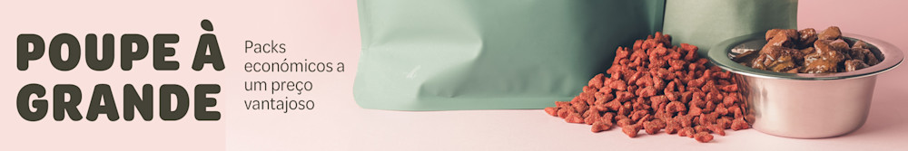 Na zooplus pode comprar em grande quantidade e poupar dinheiro! Nós oferecemos uma gama especialmente selecionada de pack económicos, que lhe permitem comprar online grandes quantidades de comida para o seu animal de estimação com descontos espetaculares. Do que está à espera? Comece a poupar agora!Compre packs económicos de comida para o seu cão, escolha entre as nossas marcas selecionadas como Royal Canin, Eukanuba, Applaws e muitas outras. Com opções de ração e comida húmida, temos a escolha certa para cada cão. Temos também uma seleção de packs económicos de comida para gato - com marcas de ração e comida húmida, temos uma grande variedade de marcas, entres elas Felix, Whiskas, Gourmet Gold, Sheba e muitas mais! Pode comprar packs económicos de saquetas, latas e até mesmo de snacks!
